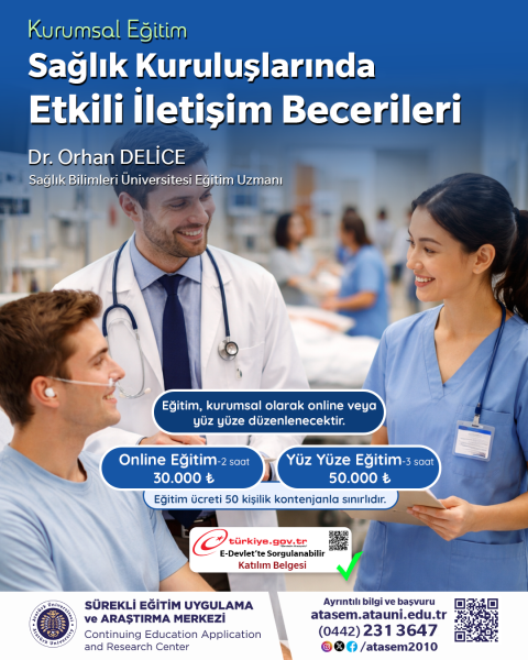 Nisan 15, 2026 In Planlanan Eğitimler Comment off Sağlık Kuruluşlarında Etkili İletişim Becerileri Eğitimi